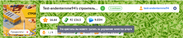Любая услуга в компании расходует кристаллы.