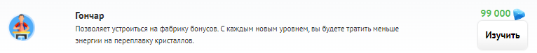 Каждый таксист может получать дополнительный заработок, устроившись работать на Фабрику бонусов. Чтобы работать на Фабрике бонусов, прежде всего, Вы должны изучить навык «Гончар». Для этого откройте страницу «Навыки» в профиле и нажмите на кнопку «Изучить» в блоке навыка «Гончар».
