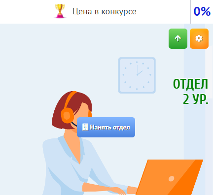 Далее выберите интересующий Вас отдел, и нажмите на кнопку «Нанять отдел». Отделы отличаются типами и размерами предоставляемых бонусов. Чем выше уровень отдела, тем больше типов бонусов он может предоставлять компаниям-клиентам.