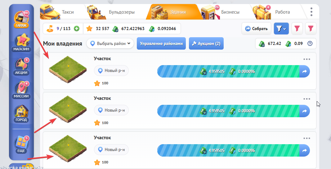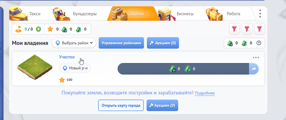 Это механика в нашей игре, которую мы сделали специально для Вас, чтобы Вы могли приобретать или продавать участки земли и зарабатывать на их продаже.