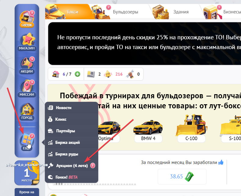 Способ второй - наведя курсор на иконку “Еще”, в выпадающей менюшке выбрать “Аукцион”