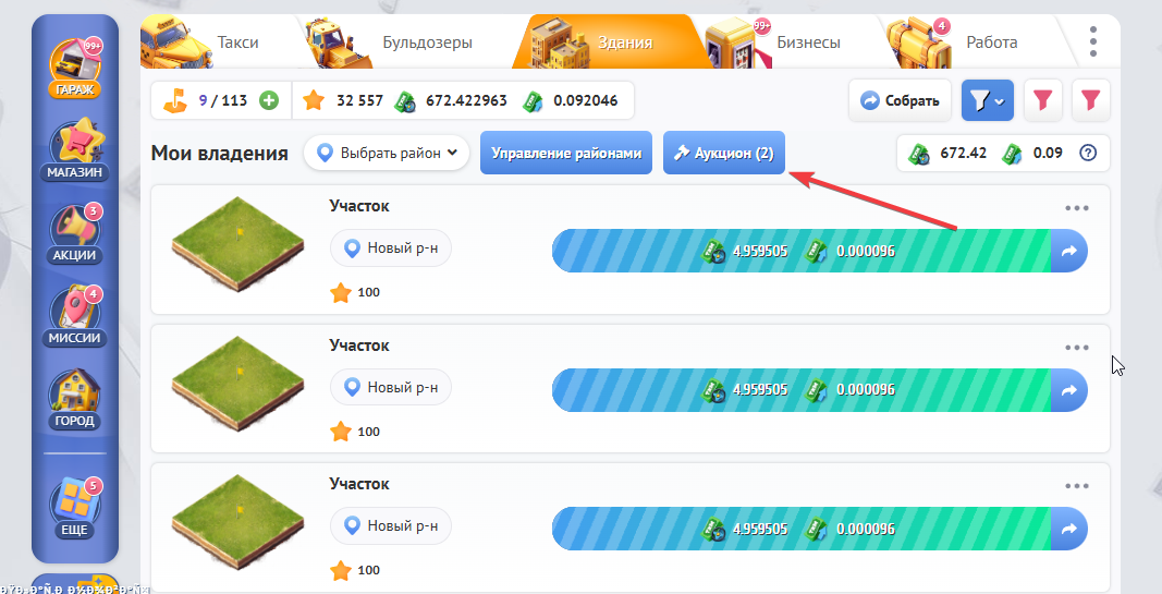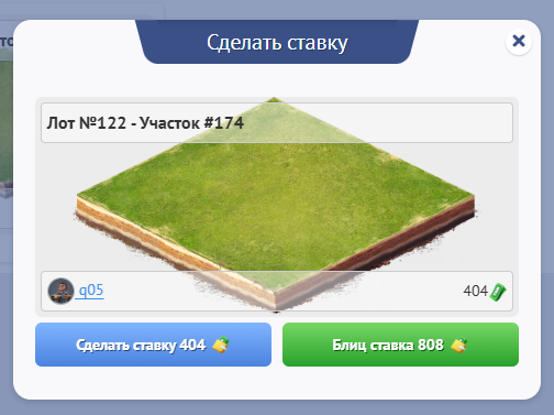 Все участки, которые будут успешно раскатаны Вами или другим игроками будут появляться на Аукционе