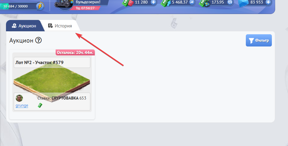На соседней вкладке “История” Вы будете видеть проданные лоты, кто его купил и кто участвовал в аукционе