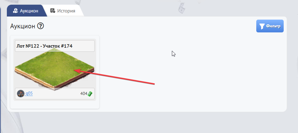 По итогу, Вы окажитесь на главной страницы аукциона, где будут представлены все доступные лоты(участки) для покупки