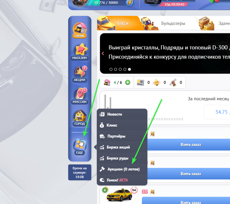 Наведя на кнопку “Еще”, в выпадающем меню нажать на “Аукцион”