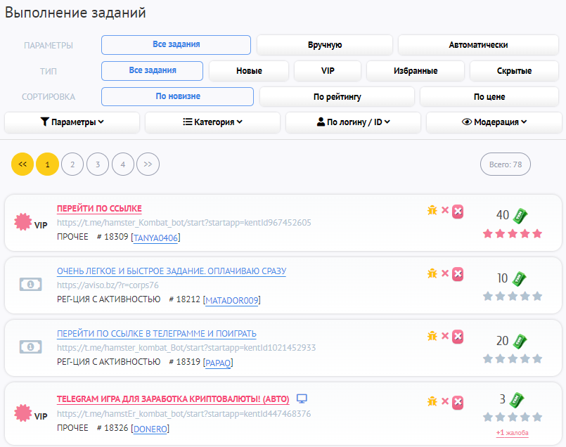 • 3 вида заработка: просмотр сайтов, выполнение заданий, чтение писем (в разработке).