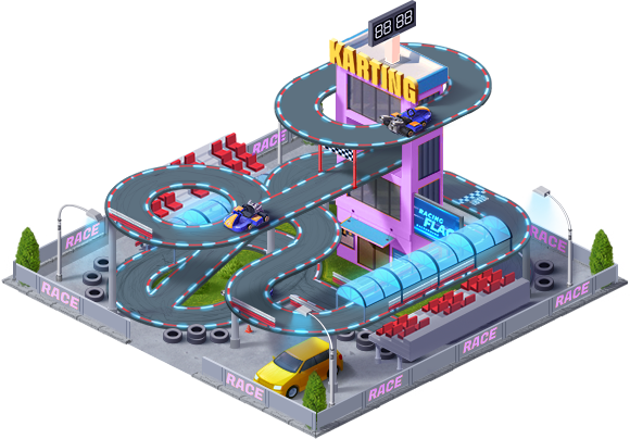 Build a Karting building, and add a new weapon to your competition arsenal! After all, Karting allows you to increase your results in "Super Swiftie Taxi Driver" up to +300%! And, of course, it will add influence points in the area to you - up to 8600!