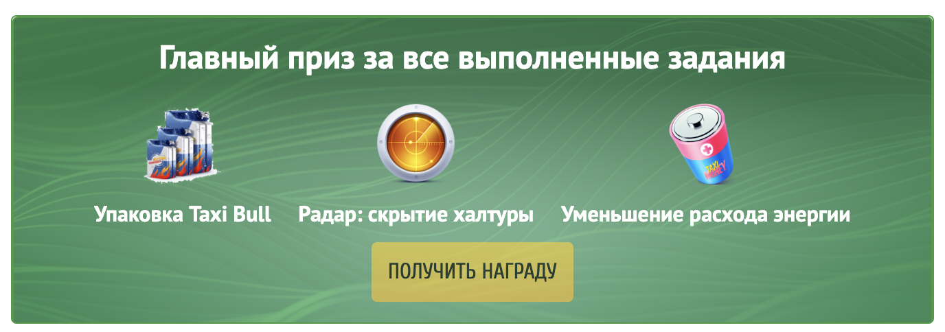 - Team breakthrough — increases the amount of money credited in the contests "The fastest taxi driver" and "The fastest company" by up to 10%.