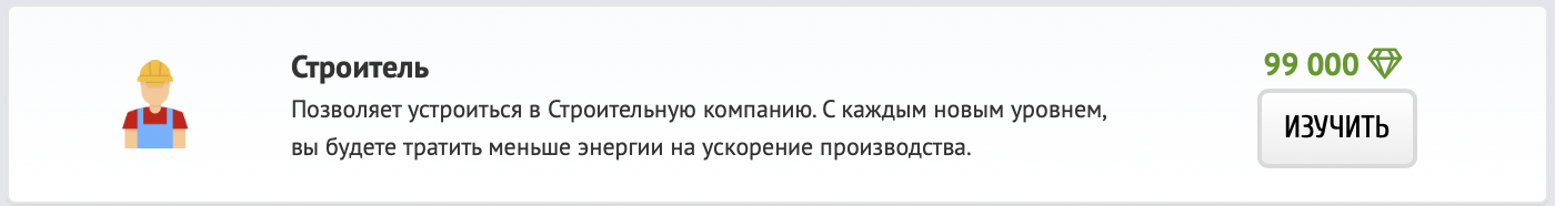 - Team rest — restores up to 5% of your energy and the energy of all company employees who do not fulfill the order.