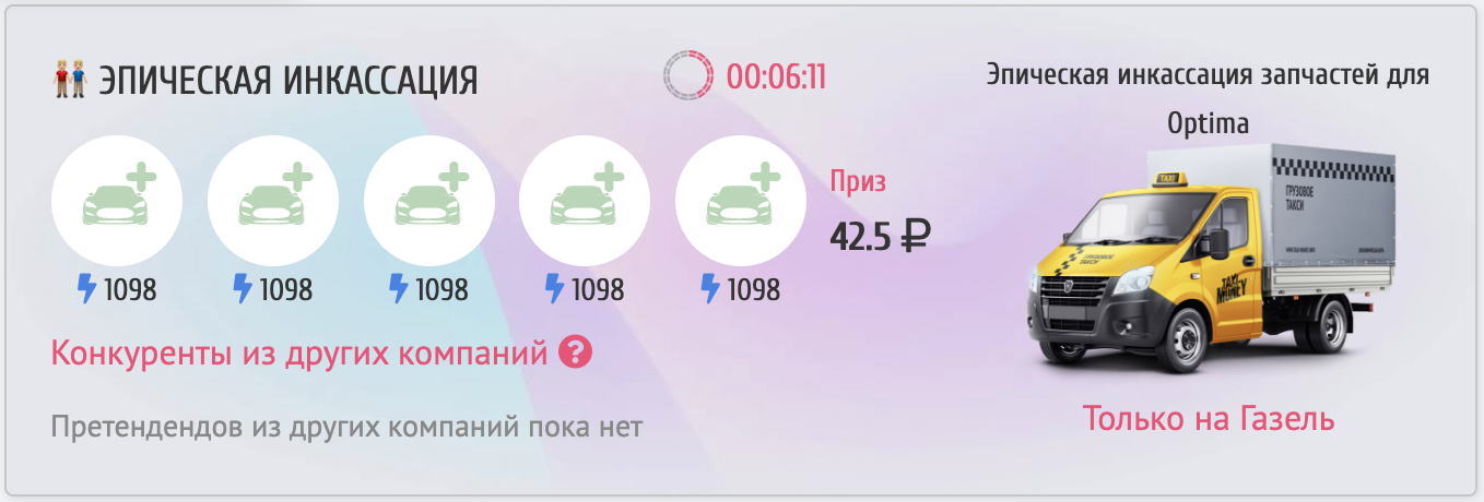 - Team breakthrough — increase in the amount of money credited in the contests "The fastest taxi driver" and "The fastest company" by up to 10%.